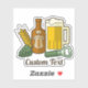 Illustration de la bière. Bouteille, verre, ouvrir, houblon et orge. Texte personnalisé.