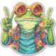 Étalez la paix et les vibes positives avec notre autocollant de signe de paix hippie grenouille. Cet autocollant coloré présente une grenouille géante tenant deux doigts sur chaque main dans un geste de signe de paix. Avec son design dynamique et son esprit paisible, cet autocollant est parfait pour ajouter une touche de charme super à vos effets personnels.
