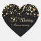 Confetti rond d'or sur arrière - plan noir 50e Mariage Anniversaire forme coeur Sticker