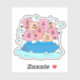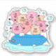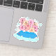 Un autocollant amusant avec des cochons de dessin animé heureux qui font une fête de piscine. Art peint à la main, de couleur numériquement pour décorer votre ordinateur portable, vos journaux, etc.