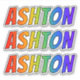 Sticker Prénom "ASHTON" avec colorant arc-en-ciel amusant