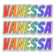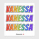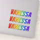 Ce design d'autocollant excitant, multicolore et amusant comporte le prénom commun ou prénom "VANESSA", avec les lettres du nom avec un motif coloré du spectre arc-en-ciel inspiré de couleur dégradé. Ce pourrait être un cadeau amusant à donner à quelqu'un dont le prénom est Vanessa. [~Z0000361]