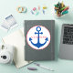 This preppy vinyl sticker features a classic nautical anchor in blue on white with an accent of red. Personalize with your choice of name or special text. Great for personalized gift bags and party favors.