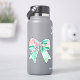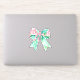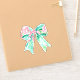 Ce mignon sticker en vinyle présente un arc floral rose et turquoise. Amusant pour les sacs cadeaux et les faveurs de fête.
