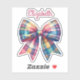 Ce mignon autocollant présente un arc plaid dans des tons préppy de rose, vert et jaune. Personnalisez avec votre choix de nom ou de texte spécial.