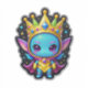 Une mignonne princesse alien bleue aux grands yeux, portant une couronne et une armure d'or, dressée contre un arrière - plan étoilé.