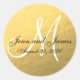 Sticker Gold Black Wedding Favor Sticker Initial Bride Groom Favor Sticker ou for Faire-part de mariage Envelope Seals. Entièrement personnalisable. Elke Clarke© pour MonogramGallery à Zazzle. Autres couleurs disponibles dans notre boutique. Effet photo imprimé de feuille d'or dans l'arrière - plan avec monogramme blanc et texte en script noir. Parfait pour un thème mariage noir et or.