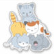 Illustration amusante de cinq chats de dessins animés en formation pyramidale avec deux chats en bas, deux au milieu et un en haut. Les chats ont des marques et des expressions différentes. L'un semble se trouver face à face.
