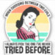 Quand Je Choisis Entre Deux Maux, Je Choisis Toujours Celui Que Je N'Ai Jamais Essayé Avant. Cet accessoire de citation rétro sarcastique et drôle fait un grand cadeau de gag pour un homme ou une femme qui a la réputation de mauvaises décisions ou d'être un fauteur de troubles, et aime le sarcasme. Drôle de dire design pour quiconque aime se mettre en méfait avec ses amis, aime aller à une fête, se mettre en difficulté ou boire ensemble. Parfait pour toute personne ayant un sens aigu de l'humour. Il y a une femme innocente qui se dresse contre un coucher de soleil.