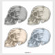 Quatre crânes comme stickers de vinyle en quatre couleurs différentes.