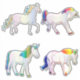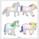 Quatre Unicornes différentes sur une feuille pour que vous puissiez les arranger comme vous le souhaitez sur votre mur, ordinateur portable ou où que vous soyez