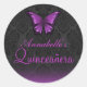 Sticker Quinceañera à papillon pourpre et Damas