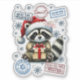 Sticker Raccoon Avec Cadeau Et Timbres De Noël