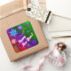 sticker carré avec une image de jolies flocons de neige bleus, fuchsia et verte sur un arc-en-ciel arrière - plan de lumières de vacances et un sentiment de vacances blanc. Voir invitation carré, confettis et papier d'emballage correspondants. Voir la collection entière de Stickers du Nouvel An sous la catégorie CARDS & STICKERS dans la section VACANCES.