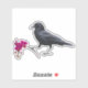 Une corneille noire tient une orchidée rose sur cet autocollant distinctif.