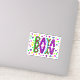Raya, Le nom Raya Dessin à la main de style d'art populaire fantaisiste Autocollant vinyle pour bouteilles d'eau, scrapbooking, artisanat, création de cartes ou où vous voulez le mettre. Couleurs vives : sarcelle, rose, violet, jaune, vert citron.