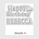 Un très beau autocollant personnalisé pour Rebecca. Le nom est disponible sous forme de texte et de Happy Birhtday en différentes tailles et en toute transparence. Parfait pour toi, ta meilleure amie, épouse, soeur, mère, tante, grand-mère, fiancée, cousine, partenaire de vie ou qui que tu veuilles faire avec un cadeau personnel et indivubiel. Regarde aussi dans notre magasin pour trouver d'autres produits sous ce nom comme cadeau. Vous trouverez beaucoup d'autres produits et designs personnalisés.