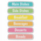 This sticker sheet includes popular section labels such as Main Dishes, Side Dishes, Breakfast, Beverages, Desserts, and Breads—perfect for creating clear binder chapters and keeping your cookbook tidy.
