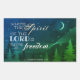 Beau autocollant d'écritures représente une forêt de pins avec un ciel nocturne rempli d'étoiles et de flocons de neige. Il présente la Bible Verse 2 Corinthiens 3:17, "là où est l'Esprit du Seigneur, il y a la liberté."