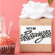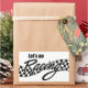 L'expression "Let's Go Racing" avec une bannière à damiers en noir et blanc, qui semble souffler dans le vent, derrière elle.