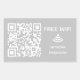 Personnalisé Wifi gratuit Business qr code connexion en gris est un code QR moderne, simple et minimal sur un panneau que vous pouvez utiliser pour partager votre connexion wifi invité. Le wifi parfait pour signer avec le code QR, votre site Web ou les médias sociaux QR code signe. Il est parfait pour tout professionnel avec un magasin de rue ou un bureau : agent immobilier, salon, coiffeur, petite entreprise Social Media Sign... Cliquez sur "Customisez-le" pour remplacer par votre propre code QR votre nom de réseau wifi et votre mot de passe.