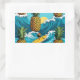 Sticker Rectangulaire Ananas Surfer : Aventure tropicale estivale
