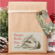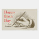 Autocollant d'anniversaire inspiré d'une photo vintage d'une main d'homme tenant un stylo plume. La main vient de finir d'écrire un simple vœu d'anniversaire, juste Joyeux Anniversaire et le nom de l'expéditeur.