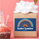 Les amateurs d'aventure visitent la région du lac Lanier pour paddle, randonnée, pêche, voile, vélo, camping, randonnée et escalades. Ce design rétro a un arc-en-ciel et un canoë.