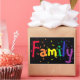 Le mot Famille fait dans une fête arc-en-ciel amusant regarder sur arrière - plan noir, autocollant.