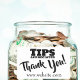 "Tips Appréciated" gratuités jar rectangle autocollant avec lien de site Web.