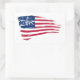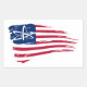 Image stylisée du drapeau américain avec le symbole de l'atome athée dans le champ bleu où les étoiles seraient.