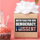 Avec La Peur Pour Notre Démocratie, Je Divise. Cette citation en réponse à la décision de la Cour suprême concernant l'immunité présidentielle devrait nous inquiéter tous de l'avenir de notre pays et de nos institutions démocratiques. Cet accessoire politique est un cadeau parfait pour les hommes et les femmes qui savent que c'est un moment dangereux pour la démocratie américaine. Allez voter à l'élection présidentielle de 2024 !