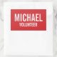 Sticker Rectangulaire Badge volontaire rouge avec nom personnalisé