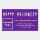 Joyeux Halloween ! Un des jours fériés de l'année pour annoncer votre entreprise. D'ailleurs, cherchez-vous un autocollant que vous pouvez utiliser comme matériel marketing pour annoncer votre entreprise, pour promouvoir votre marque auprès des clients ou pour utiliser comme étiquette de produit cet Halloween? S'il vous plaît voir cet autocollant de rectangle violet avec salutation Halloween. Il se pourrait que tu l'aimes. Les couleurs de police sont roses et blanches. Customisez-le et utilisez-le pour sensibiliser la marque. Pour customiser cet autocollant, téléchargez votre logo d'entreprise, tapez votre nom d'entreprise ou d'entreprise, votre adresse et votre numéro de téléphone, puis vérifiez l'apparence. Si l'apparence vous plaît, vous pouvez passer votre commande maintenant. Si vous avez besoin de redimensionner et déplacer le logo et les textes pour tenir sur cet autocollant ou sur d'autres formes et tailles que vous choisirez, s'il vous plaît changer dans l'outil de conception. Vous pouvez également effectuer d'autres modifications selon vos préférences dans l'outil de conception, comme changer la couleur de l'autocollant, la couleur de police et le style de police.