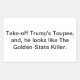 Take-off Trump's toupee, and, he looks like the Golden State Killer. Comic Conscious-Social-Commentary Splash-art sticker-design by Jeff Hankamer at Artjunkhaus