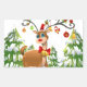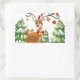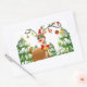 Un mignon renne dans la neige avec des arbres et des ornements accrochés à ses bois