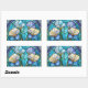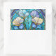 Sticker Rectangulaire Bleu Turquoise Floral Art Nouveau Vitrail