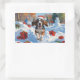 Sticker Rectangulaire Bluetick Coonhound Courir dans la neige avec Noël