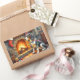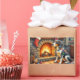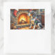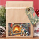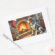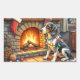 Sticker Rectangulaire Bluetick Coonhound Fireplace with Christmas Lights