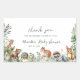 Ajoutez une touche de charme à vos faveurs de baby shower avec ce sticker Boho Chic Woodland Baby shower Merci. Doté d'animaux de la forêt d'aquarelle, d'herbe de pampas et de verdure rustique, cet autocollant de remerciement sans distinction de genre est parfait pour un baby shower de bois, des mariages, des plaques et des faveurs de fête. L'élégant design minimaliste vert foncé se marie harmonieusement avec les thèmes du baby shower de montagne boisé, ce qui en fait un complément élégant à vos invitations, papeterie et fournitures de fête. Que vous fêtiez avec un baby shower boho-chic, fantaisiste ou rustique, ces autocollants de remerciement personnalisés complètent votre événement avec une touche tendance et moderne.