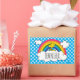 Personnalisez ce design super mignon avec Woodstock assis sur un nuage devant un arc-en-ciel coloré.