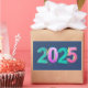 Joyeux Nouvel An 2025, image concept avec des chiffres en verre coloré sur arrière - plan bleu brillant