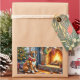 Sticker Rectangulaire Boxer Sitting by Fireplace with Christmas Lights