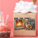Sticker Rectangulaire Cane Corso Fireplace with Christmas Lights