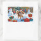 Sticker Rectangulaire Cavalier King Charles Spaniel Neige avec Noël