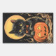 Sticker Rectangulaire Chat d'Halloween vintage avec Citrouille