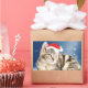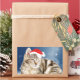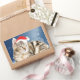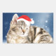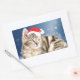 Sticker Rectangulaire Chat mignon portant chapeau de Noël rouge neige