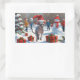 Sticker Rectangulaire Chat Sphynx coule dans la neige avec Casquette de
