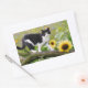 Sticker Rectangulaire Chat tuxedo mignon sur une branche d'arbre avec de