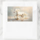 Sticker Rectangulaire Cheval Blanc courir sur la plage